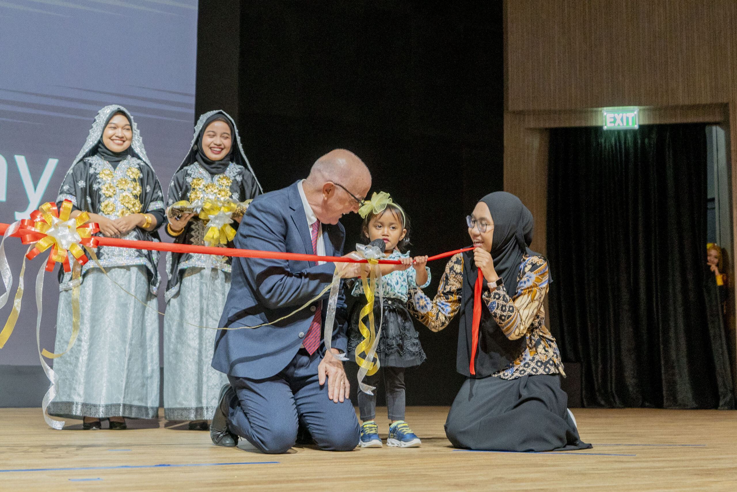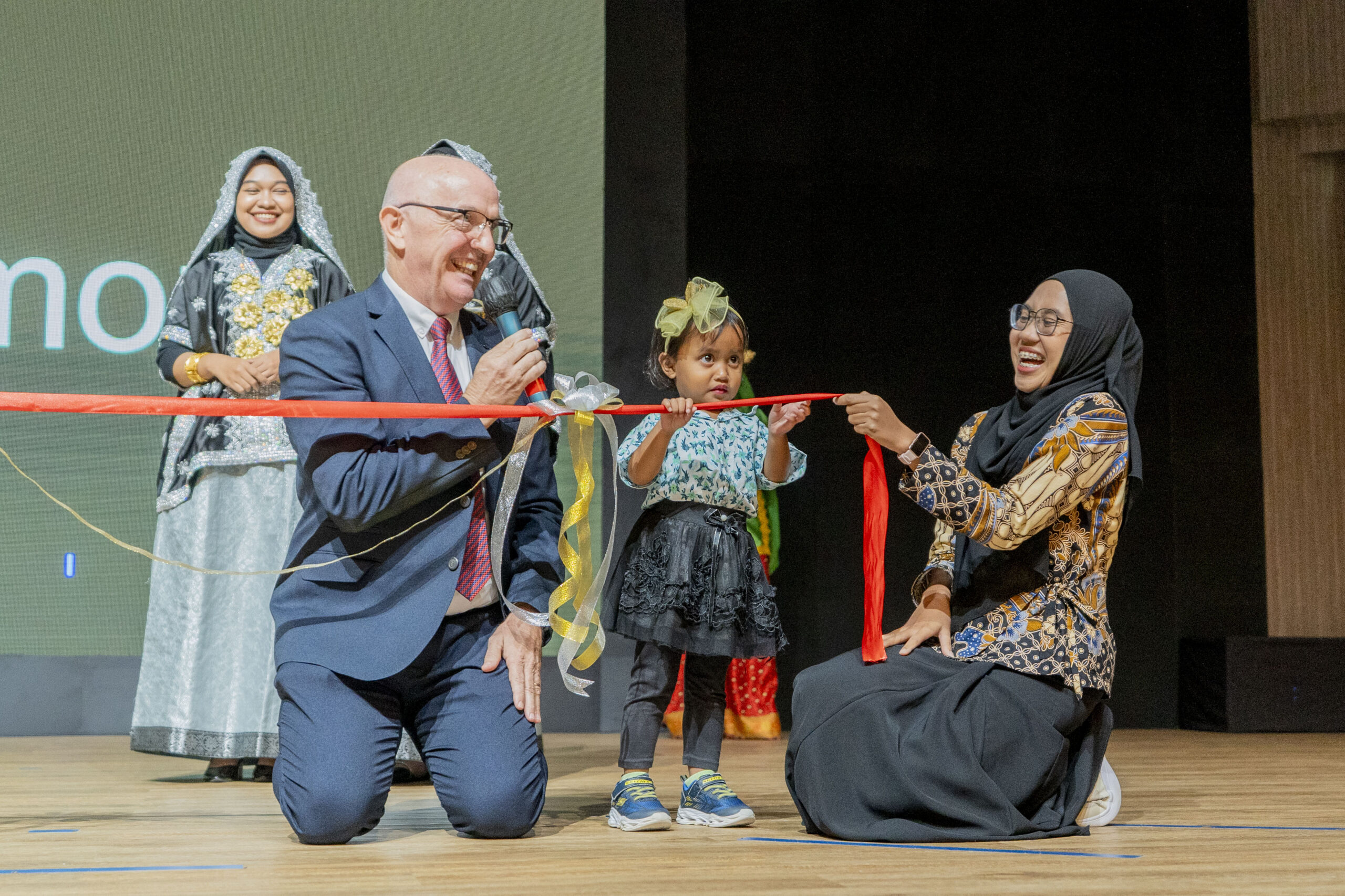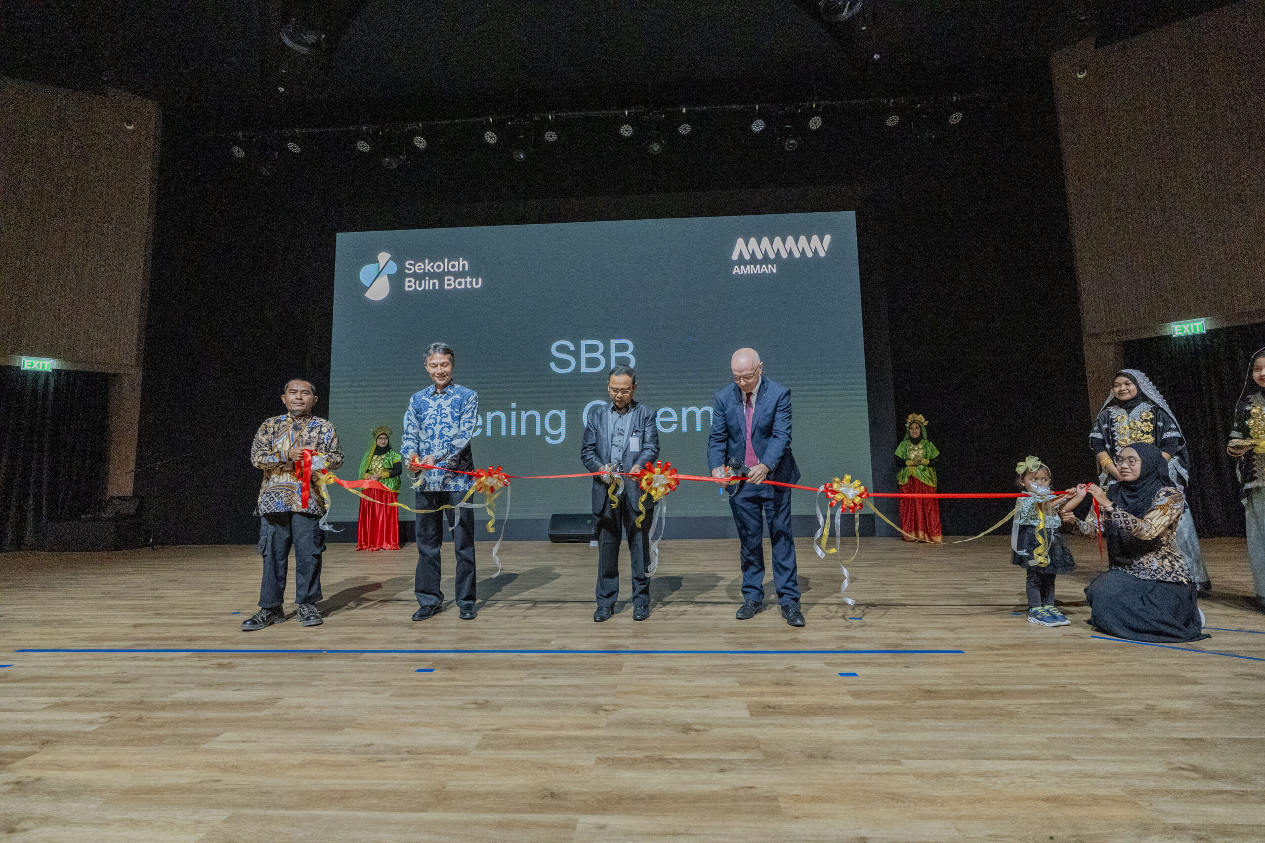 Amman Academy, celebrated its grand opening ceremony on April 25, 2024, in the new school theatre. The event drew visitors from top universities across the country and included special guests Pak Arief Sidarto, Commissioner of AMMAN, and Bapak Aidy Furqon, Kepala Dinas Pendidikan and Kebudayaan Provinsi. The ceremony was a resounding success, highlighting AMMAN’s commitment to education and the local community. Bapak Arief Sidarto officially opened the school with an inspiring speech, setting the tone for the event. Bapak Aidy Furqon, representing the province’s education department, added his support and praise for Amman Academy’s efforts to provide quality education. The ceremony featured a variety of performances that showcased the talents of Amman Academy’s students and parents. Among the standout acts was a wonderful solo singing performance by Raisa Azima Indraji, (Aizma). Her voice captivated the audience and added a touch of elegance to the occasion. A significant highlight of the ceremony was the symbolic cutting of the ribbon. Pak Pur, the longest-serving Amman Academy staff member with 26 years of dedicated service, joined Eria Sri Diwamuizza (Eria), the youngest Amman Academy member, to officiate in the ribbon-cutting. This heartwarming moment represented the school’s respect for its past and its excitement for the future. Throughout the event, AMMAN and its board of directors were recognized for their unwavering commitment to the school and its new campus. Their support has been instrumental in aspiring Amman Academy to become a beacon of educational excellence in Indonesia. The ceremony was a day filled with celebration, inspiration, and a strong sense of community. It marked the beginning of a new chapter for the school, filled with promise and opportunity. (photo credit: Irfan Julio, Amman Communications team)